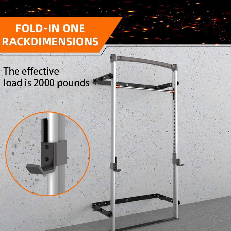With its innovative folding feature, this power rack can be conveniently stored away when not in use, helping you maximize your workout space. After your workout, you can stow away the rack, taking up virtually no space. Moreover, it is with 3 Sec. bar height adjustments and easy to be installed.