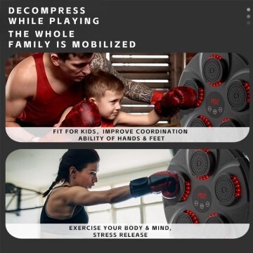 The LED display will show the number of hits you make, recording your every progress and growth. Smart music boxing machine supports Bluetooth music and you can choose your favorite songs during boxing workout. Surround speakers and cool lights keep you immersed while training.